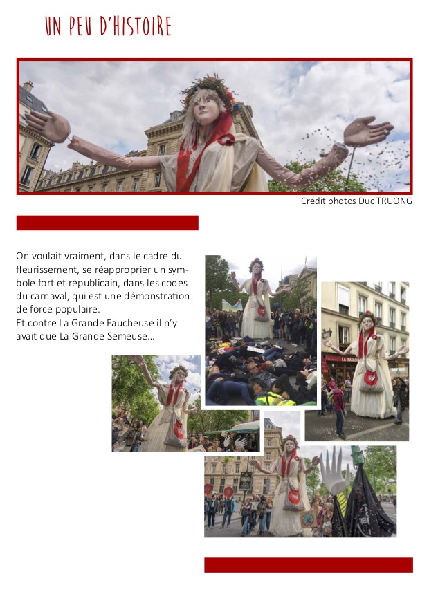 Face à la Grande Faucheuse des pesticides, il n’y avait qu’elle pour lui tenir tête… Inspirée des codes du carnaval, empreinte de symboles républicains, la Grande Semeuse des Coquelicots entame une tournée nationale.